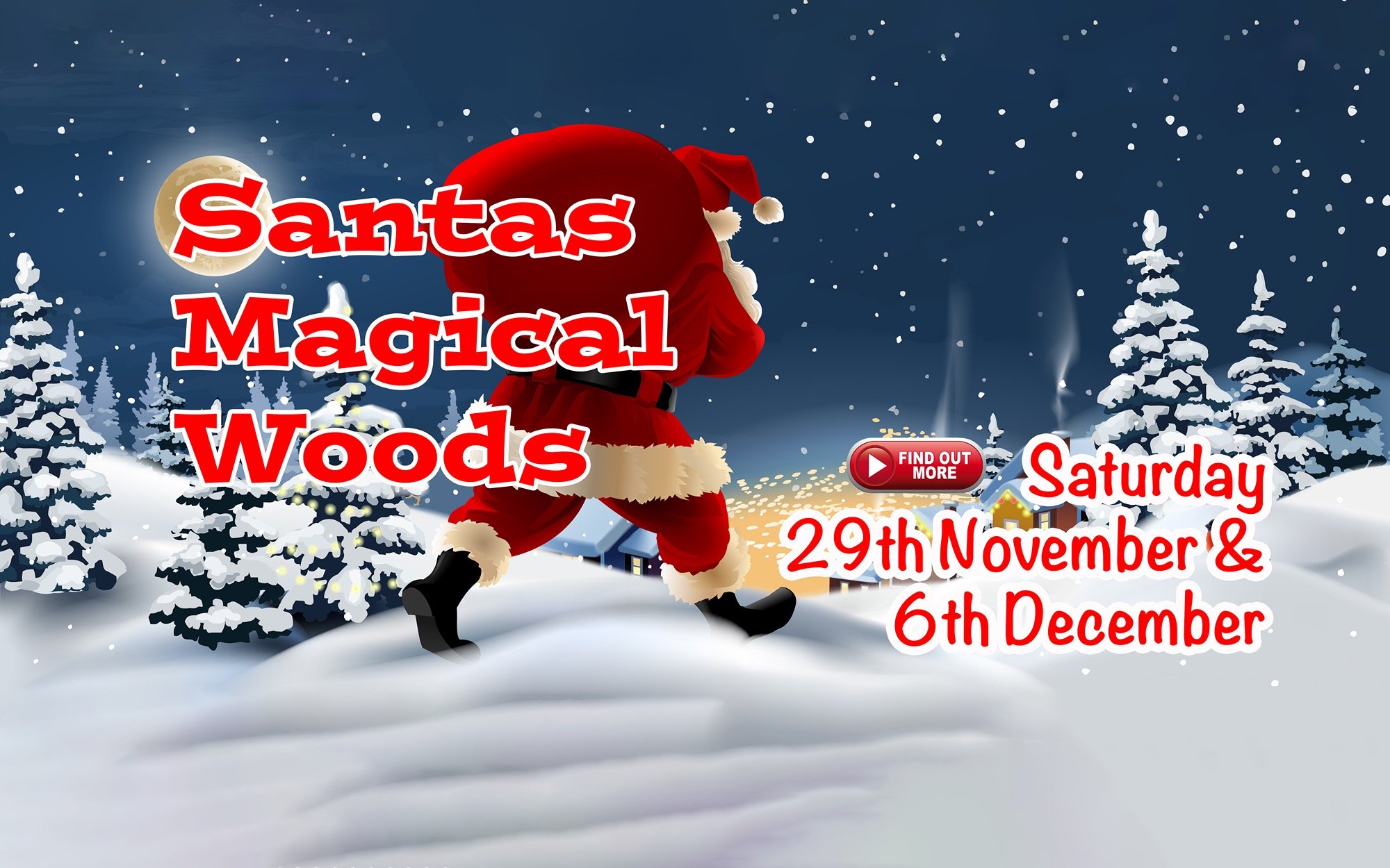 Join us for a magical walk through our decorated Woodlands, toast Marshmallows with the Elf and visit Santa in his warm lounge.